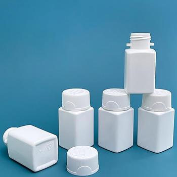 Stokta 60ml gıda sınıfı boş katı beyaz kare plastik hap şişeleri katı toz beyaz ilaç ambalaj şişeleri